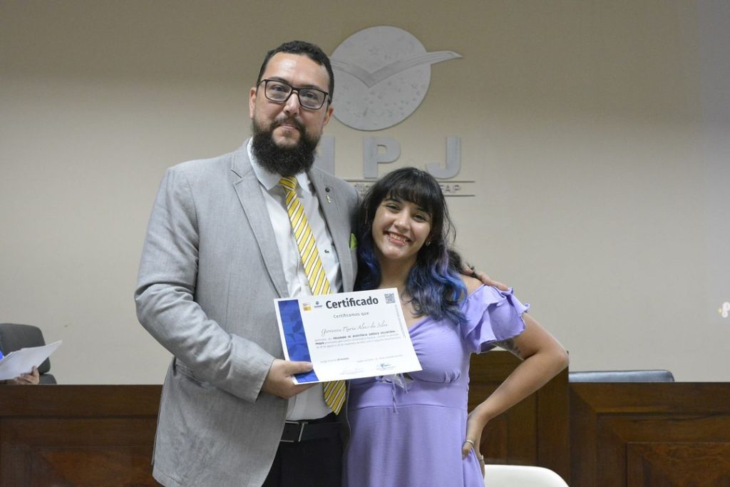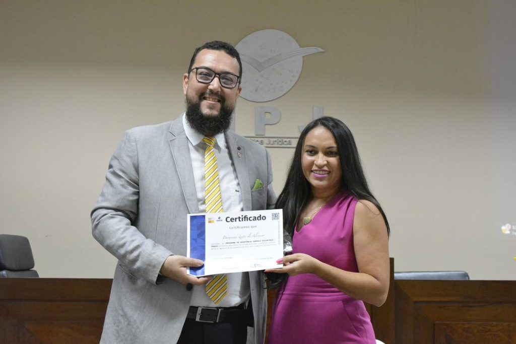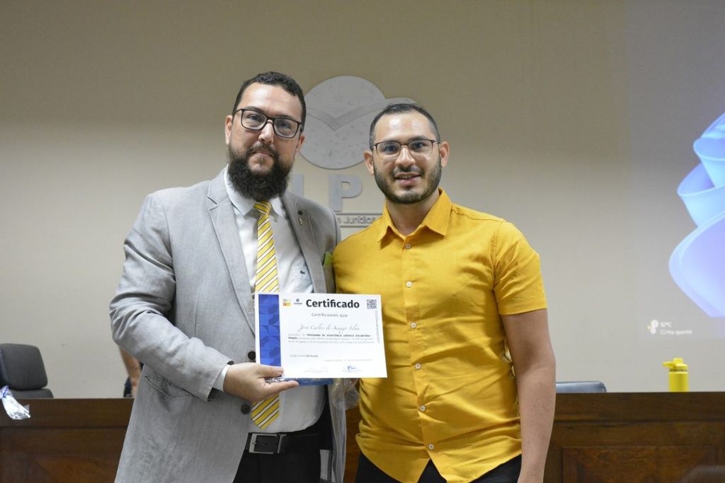 Na oportunidade, a UniFAP foi agraciada com a certificação e esteve representada pelos Professores Wesley Monteiro, Coordenador Geral do Curso de Direito, e Carolinne Gonçalves, Coordenadora do Núcleo de Práticas Jurídicas - NPJ.