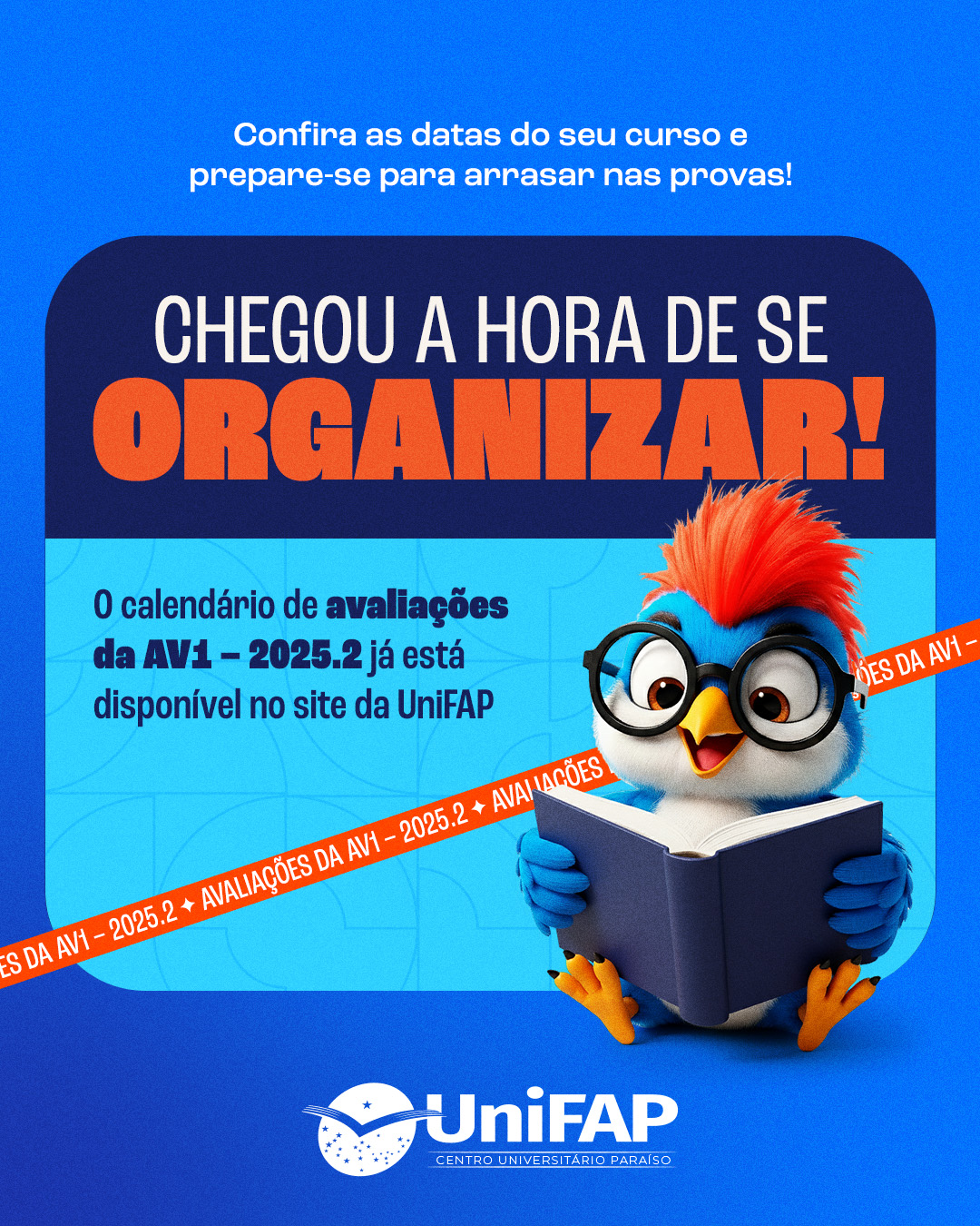 A UniFAP divulga oficialmente o calendário de avaliações da AV1 para o semestre 2025.2. Confira abaixo as datas das avaliações do seu curso e programe-se com antecedência.