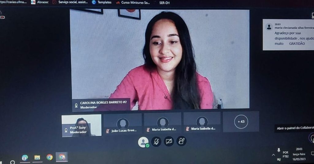 Do dia 15/05 ao 18/05 ocorreu a III Semana de Serviço Social, coordenada pela profa. Suzy Medeiros, oportunizando aos discentes participar tanto remotamente quanto de modo presencial.