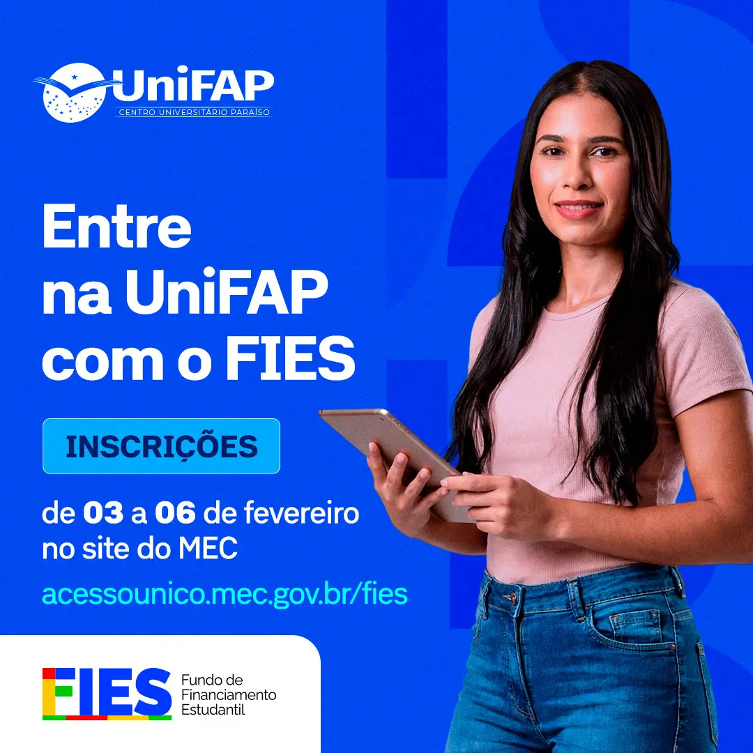 O FIES (Fundo de Financiamento Estudantil) é um programa do Governo Federal que possibilita ao estudante financiar o curso de graduação em instituições privadas. Durante o curso, o aluno paga apenas uma parte do valor da mensalidade, conforme as regras do programa. O saldo financiado é pago após a conclusão do curso, com parcelas ajustadas à renda do estudante, facilitando o acesso ao ensino superior.